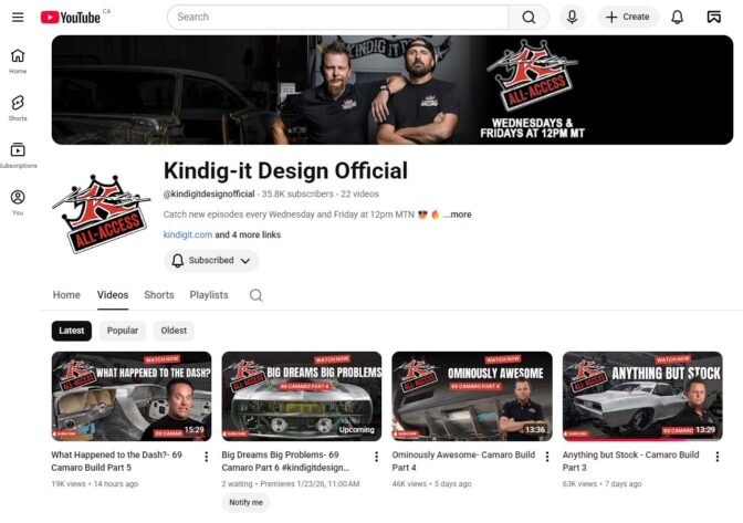 OMG! Kindig-It is Back Online! by admin, posted in Uncategorized These guys have been HUGELY inspirational to me! Glad to see them on their own! https://www.youtube.com/@kindigitdesignofficial/