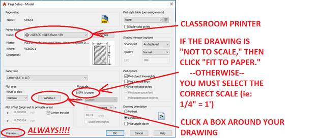 SPECIAL NOTE FOR ACHITECTURE: AutoCAD is not able to plot to the BIG Plotter. To overcome this, we will print to a PDF file (ARCH D size paper), and then Adobe Reader CAN print to the Plotter.