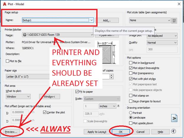 THIS TELLS AUTOCAD WHAT YOU WANT TO PRINT. IT DOES NOT ACTUALLY PRINT AT THIS STAGE.