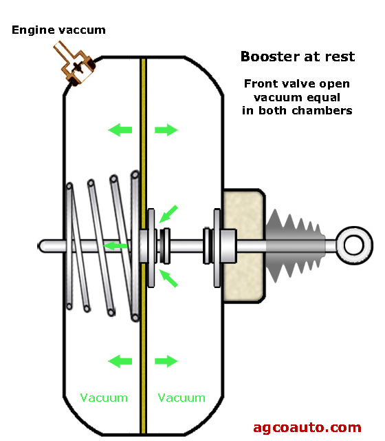As a safety precaution, there is a check valve in the vacuum line which allows the booster to store some vacuum. This is there to give you about three brake applications even if the engine quits running. You will know when the valve is leaking when your foot is on the brakes and you shut the engine off – the loss of vacuum makes the brake pedal instantly rise.