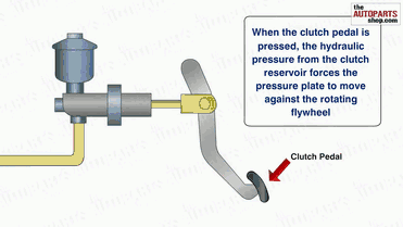 Clutch ForkTransfers motion from the clutch release mechanism to the throw-out bearing and pressure plate. These are a simple lever that can be controlled by a cable, a hydraulic slave cylinder, or a mechanical linkage to the clutch pedal assembly. Its pivot should be well lubricated.