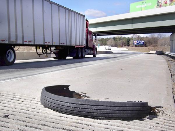 Ever see those tread sections on the side of the road? Big rigs get their tires “re-treaded” or “re-capped” where they glue new tread onto a bald tire. This happens again and again and again until the carcass says “ENOUGH!” and explodes, leaving the tread sections on the side of the road.