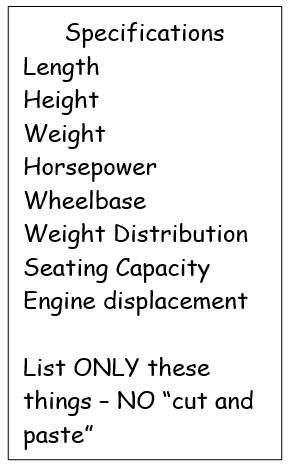 - Students will research their all-time number-one favourite vehicle