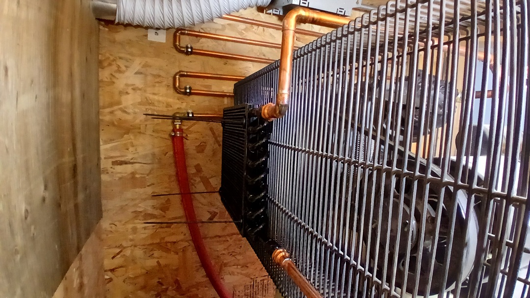 The initial testing of the cooling system saw 8°C outside. I ran the tank from empty to full. Output got up to 110°C, and the pipe into the tank hit 20°C. That’s significant!